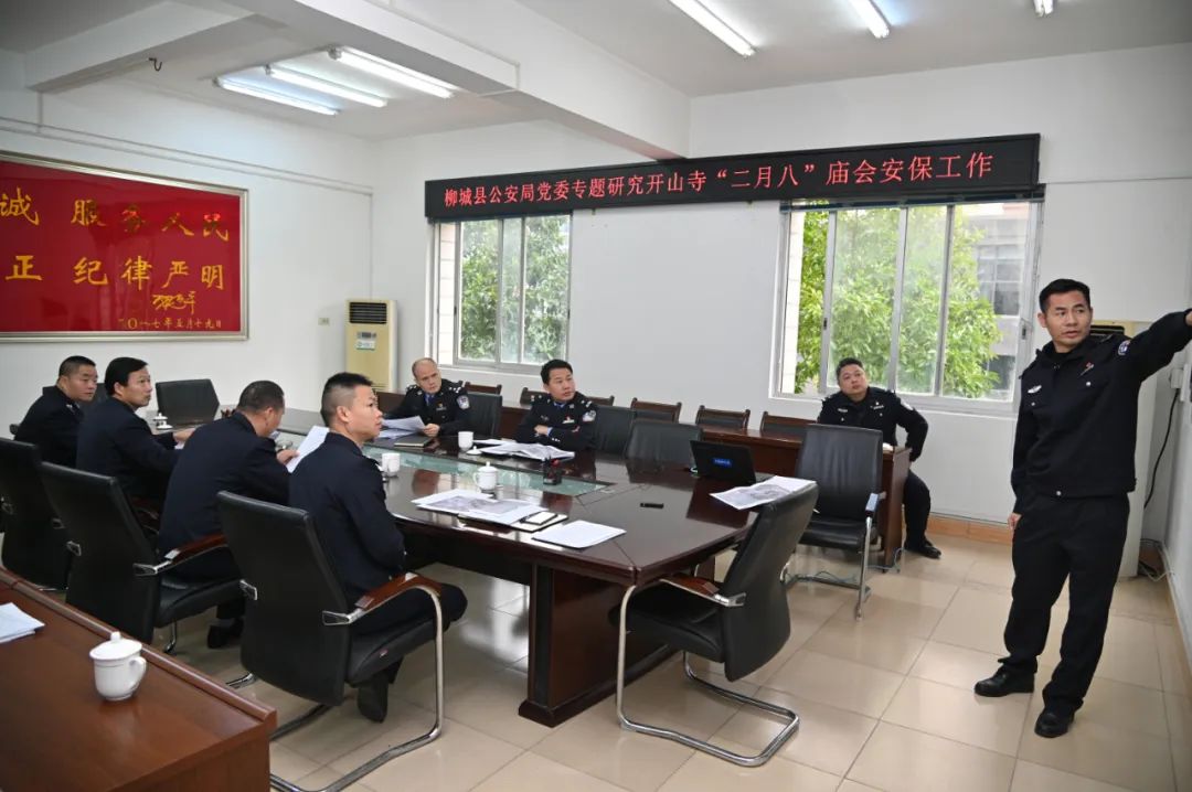 ▲2月17日,柳城縣公安局黨委專題研究柳城鳳山“二月八”廟會安保工作。