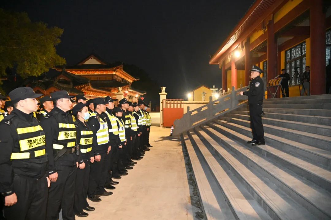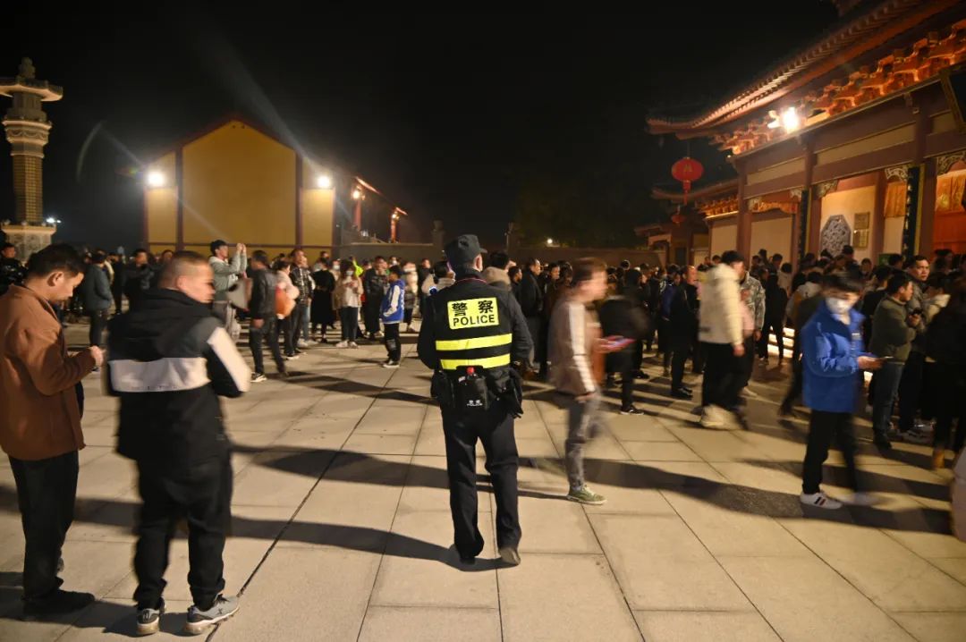 堅持多維安保,聚力現(xiàn)場保衛(wèi)守安全其中開山寺的安保工作以天王殿前大平臺和普光明殿前廣場兩個核心點,以信眾燒香路線為安保圈,以交通管制區(qū)域為輻射面,形成“點圈面”多維安保機制。