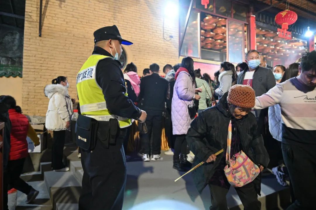 廟會安保到位:按照開山寺信眾活動路線的每個關(guān)鍵點布置一至兩名警力,將路線劃分為6個區(qū)塊進行“分段管控”,對12個復(fù)雜路口進行重點布控,利用喊話器、強光手電、哨子等實行定點警戒、隨行警戒、沿途警戒,確?,F(xiàn)場秩序和人流有效疏導(dǎo),對信眾活動沿線進行巡控,防止發(fā)生擁擠沖撞推搡踩踏事件發(fā)生。