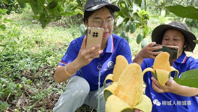 “這里是涼水山農(nóng)場(chǎng),我身后這里的一大片的桂七芒果剛剛成熟,現(xiàn)在線上團(tuán)購(gòu)只要4元1斤?!?月2日,柳城縣新媒體協(xié)會(huì)會(huì)員、三農(nóng)達(dá)人莫金雄正在柳城縣涼水山農(nóng)場(chǎng)覃阿姨家的芒果地里直播。莫金雄現(xiàn)場(chǎng)采摘新鮮的芒果,在鏡頭前剝開并品嘗芒果,向網(wǎng)友展示和介紹覃阿姨家芒果的特征、口感等。