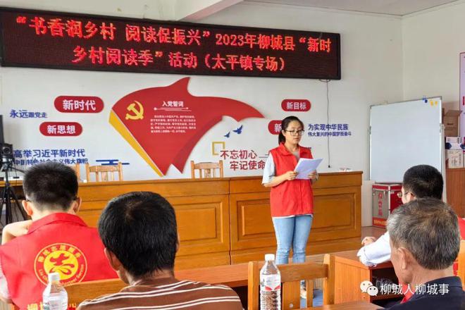 近日,柳城縣新時(shí)代文明實(shí)踐中心、中共柳城縣委宣傳部、柳城縣衛(wèi)健局、柳城縣人民醫(yī)院、柳州市新華書(shū)店有限公司柳城縣分公司以及太平鎮(zhèn)人民政府到太平鎮(zhèn)龍興村開(kāi)展“書(shū)香潤(rùn)?quán)l(xiāng)村 閱讀促振興”暨柳城縣2023年“新時(shí)代鄉(xiāng)村閱讀季”系列活動(dòng),進(jìn)一步推動(dòng)農(nóng)村群眾深入閱讀,豐富群眾的精神文化生活,營(yíng)造全民讀書(shū)、終身學(xué)習(xí)的良好氛圍。