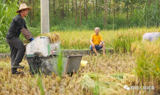 今年的早稻,是新品種試種的第三年。8月初,新品種的水稻迎來收獲,預(yù)估畝產(chǎn)900多斤。80歲的劉慶輝拄著拐杖來到了實驗田,坐在田埂上看著兒子劉名勇和村民收割稻谷。