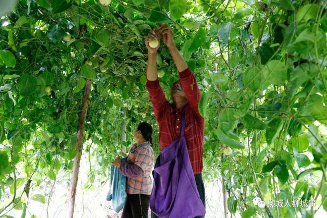 9月11日,位于柳城縣伏虎華僑管理區(qū)3隊的黃金百香果園里,工人正忙著采摘成熟的百香果,綠色的藤蔓爬滿用木頭搭起的支架棚,形成一條條綠色長廊,廊里廊外掛滿一個個百香果,好一派豐收的景象。
