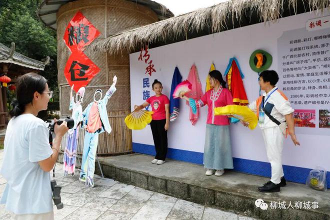 彩調(diào)文化也是本次活動(dòng)的主題之一。活動(dòng)現(xiàn)場(chǎng)設(shè)置了彩調(diào)展點(diǎn),展示了彩調(diào)戲服等道具。游客們看服裝道具,聽彩調(diào)故事,在立牌打卡留念,近距離感受柳城彩調(diào)的魅力。