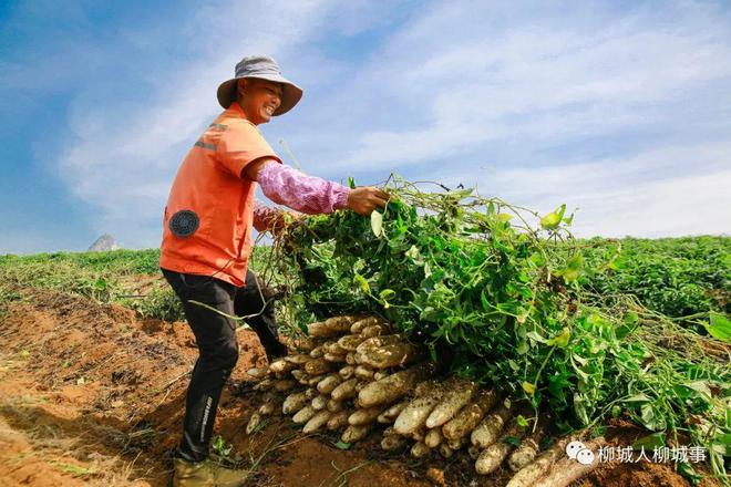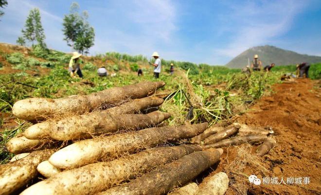 眼下正值淮山收獲季節(jié)。連日來,柳城縣社沖鄉(xiāng)的2000多畝淮山陸續(xù)上市。小編在社沖鄉(xiāng)倉貝村倉貝屯的一處淮山種植基地看到,近10名工人正在采挖淮山。