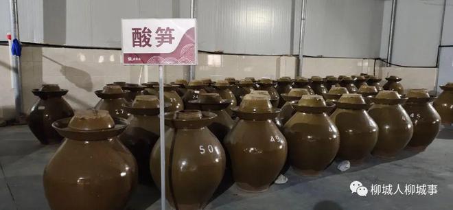 柳城酸筍是把新鮮大頭甜筍放在裝有洗米水或老水(已腌制好的酸筍水)壇子里,水必須蓋過大頭甜筍,封密保存一定時間,經(jīng)過發(fā)酵后酸化而成,腌制得好的酸筍是成金黃色的半圓柱體形狀,可以保存幾年時間。