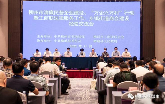 ▲市清廉民企建設、“萬企興萬村”、法律服務工作、鄉(xiāng)鎮(zhèn)街道商會建設經(jīng)驗交流會在柳城縣召開