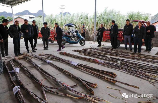 12月12日,柳城縣古砦仫佬族鄉(xiāng)嶺頭村羅寨屯的小舞臺(tái)處十分熱鬧,21戶甘蔗種植戶帶著自家種植的甘蔗,參加柳城牧原二場水肥第一屆“甘蔗王”大賽。