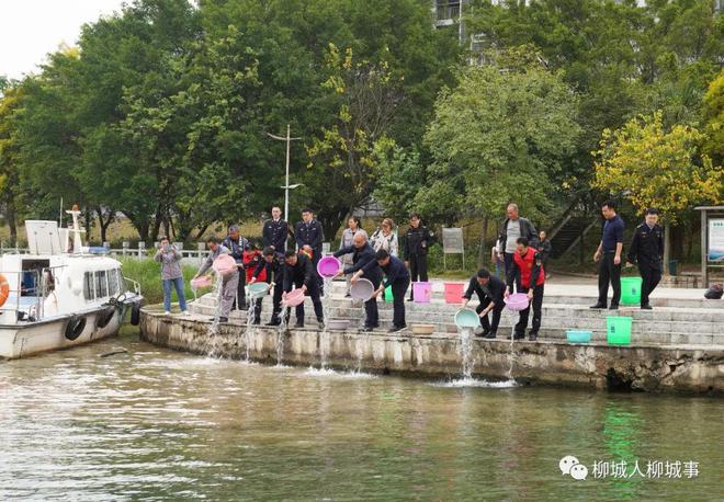 12月15日,柳城縣在縣城江濱公園親水平臺開展魚苗種人工增殖放流活動??h農(nóng)業(yè)農(nóng)村局、團縣委、柳城海事處、大埔電站等干部職工和群眾共約80人參加,一同向融江河放流魚苗。