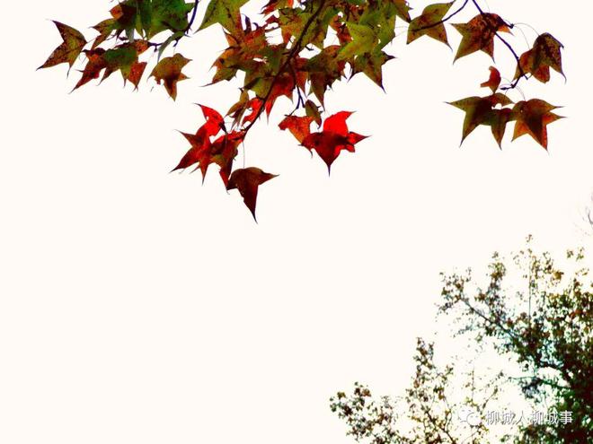 而近看楓葉,微風(fēng)吹過(guò),間或有零星的紅色跳了出來(lái),讓你眼前一亮,扯動(dòng)著你的心。