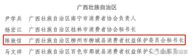 12月25日,中國(guó)消費(fèi)者協(xié)會(huì)發(fā)文,通報(bào)表彰“2022-2023年度消費(fèi)維權(quán)先進(jìn)集體和先進(jìn)個(gè)人”。先進(jìn)個(gè)人榜單中,廣西僅有4人,柳城縣消費(fèi)者權(quán)益保護(hù)委員會(huì)秘書長(zhǎng)陳致信就是其中之一。
