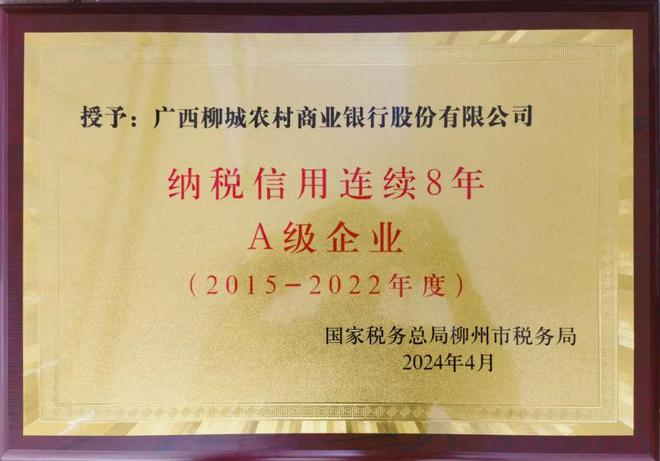 此次被國家稅務(wù)總局柳州市稅務(wù)局授予的“納稅信用連續(xù)八年A級企業(yè)”榮譽稱號是對柳城農(nóng)商銀行服務(wù)地方經(jīng)濟發(fā)展、積極履行社會責(zé)任的認可和肯定,更是對該行今后發(fā)展的鼓舞和動力。
