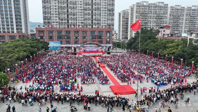 柳城民間傳統(tǒng)山歌歷史悠久?;顒?dòng)中,羅建平、羅建勛兩位柳城山歌王現(xiàn)場唱起壯歡。在場師生按年級(jí)分成三組共5000多人,進(jìn)行山歌拉歌比賽,大家邊唱邊舞,現(xiàn)場歌聲飄揚(yáng)。
