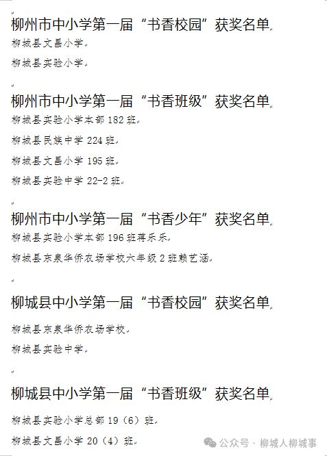 為獲得柳城縣中小學(xué)第一屆“書香校園”、柳城縣中小學(xué)第一屆“書香班級(jí)”、柳城縣中小學(xué)第一屆“書香少年”榮譽(yù)稱號(hào)的16個(gè)集體、16名學(xué)生進(jìn)行表彰,并頒發(fā)證書。