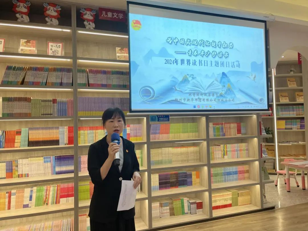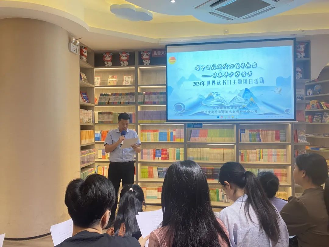 活動伊始,柳州市新華書店有限公司柳城分公司副經(jīng)理鐘威帆進(jìn)行“世界讀書日”主題宣講,號召團(tuán)員青年們閱讀好書、品味經(jīng)典,樂于讀書、持之以恒。