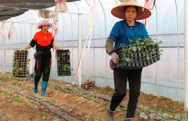 近日,小編來(lái)到柳城縣東泉鎮(zhèn)大樟村何家屯蔬菜大棚種植基地,只見(jiàn)一座座大棚錯(cuò)落有序地排列在田野間。大棚里,10多名工人們正忙著運(yùn)苗、挖坑、栽苗、埋土、擺管、澆水……大家分工合作、相互配合著。