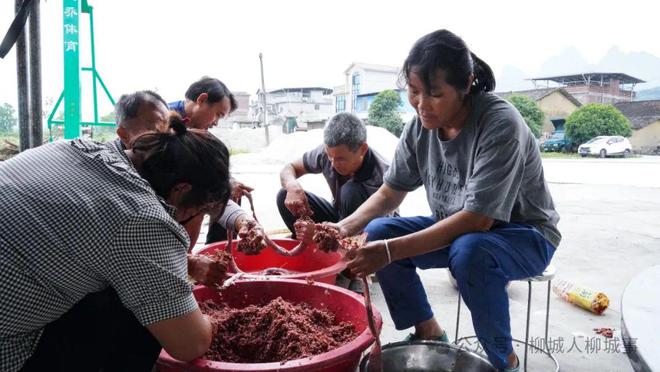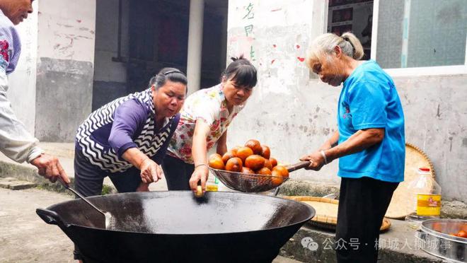 當(dāng)天,小編來到賣村屯,儀式還未開始,許多村民就圍著祠堂忙活開來了,灌“郎棒”、炸糍粑、煮粽子……忙得不亦樂乎。