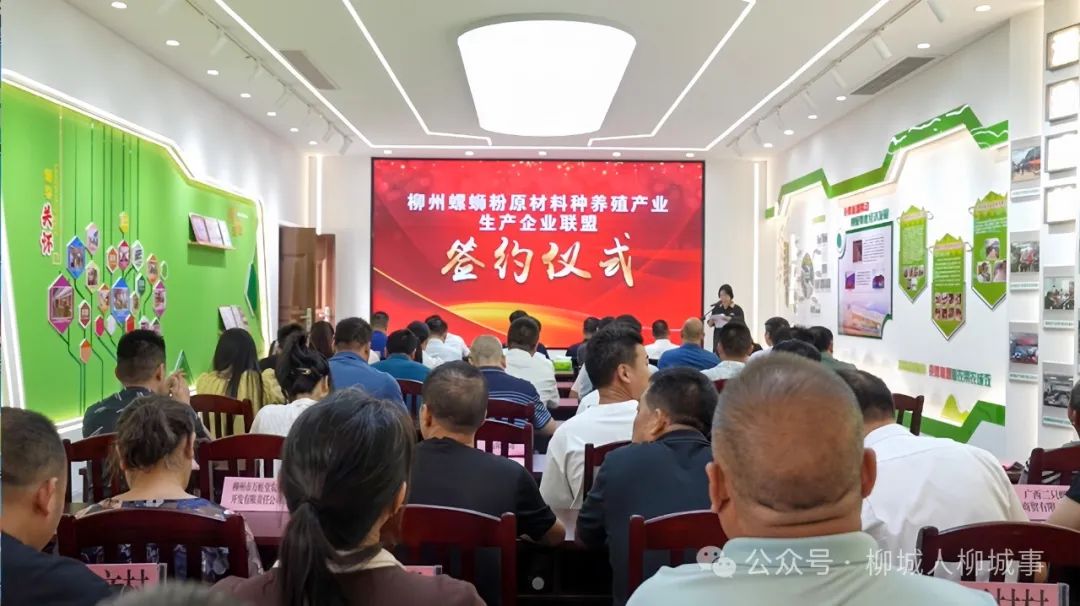 揭牌儀式結(jié)束后,21家產(chǎn)業(yè)鏈涉及企業(yè)在柳州螺螄粉原材料種植養(yǎng)殖產(chǎn)業(yè)黨建聯(lián)盟黨群服務(wù)中心一樓展示大廳舉行簽約儀式。