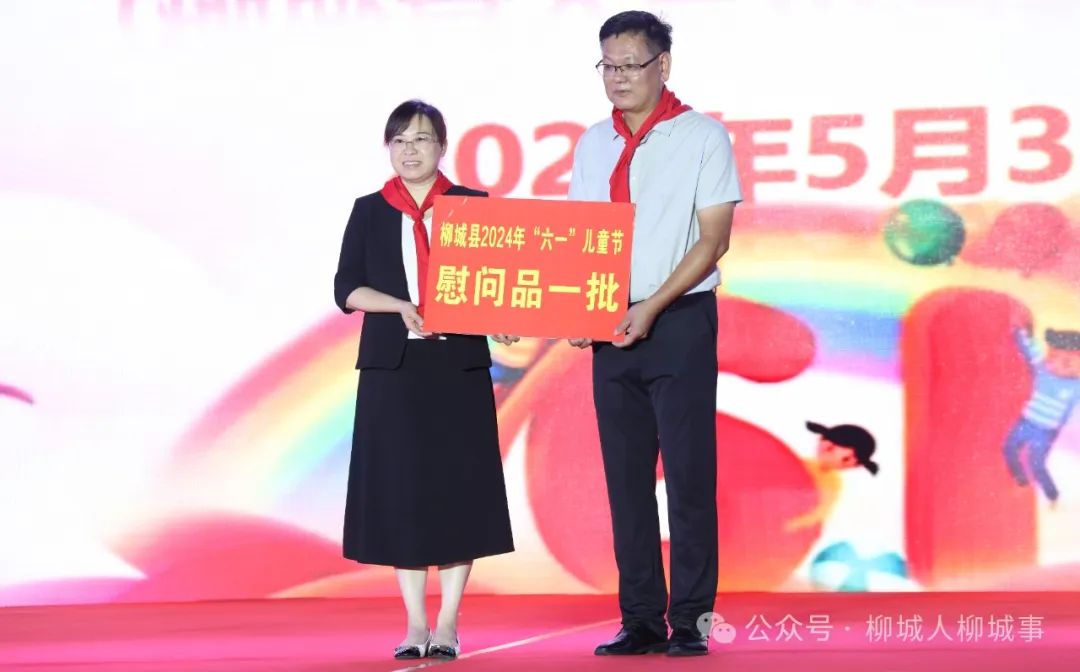 在歡慶“六一”國(guó)際兒童節(jié)之際,晚會(huì)對(duì)學(xué)生代表進(jìn)行了節(jié)日慰問(wèn),并向柳城縣文昌小學(xué)教育集團(tuán)贈(zèng)送了慰問(wèn)品。