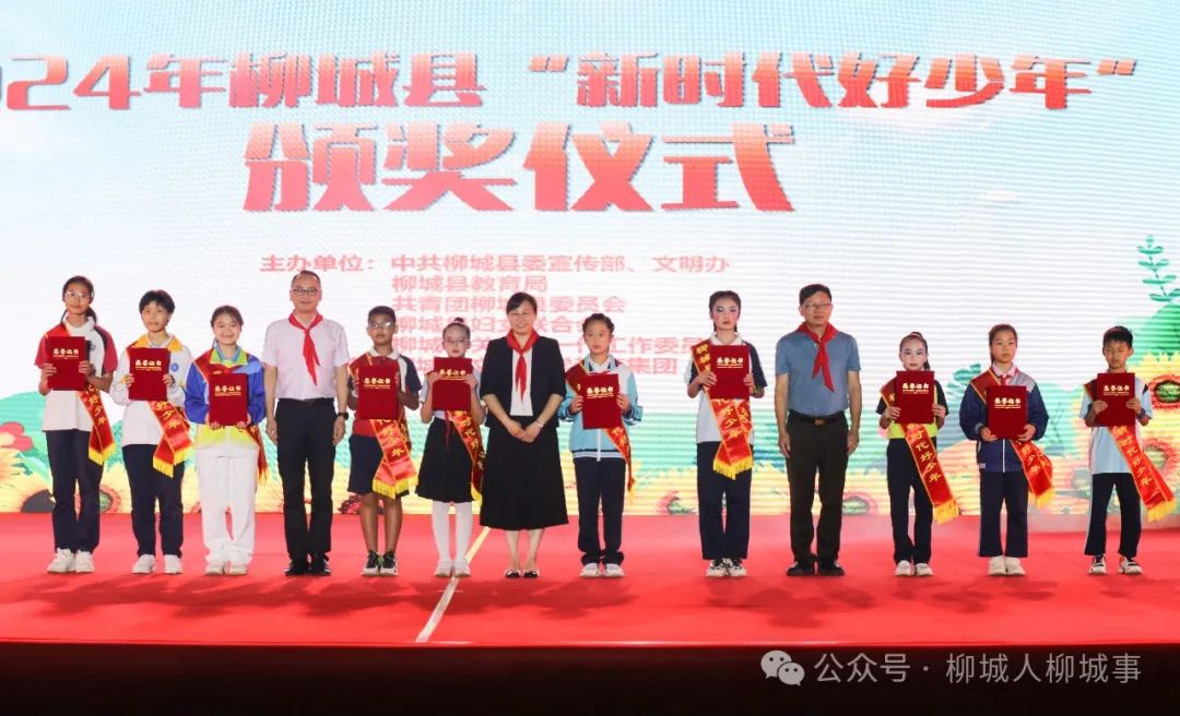 晚會(huì)還對(duì)柳城縣沖脈中心小學(xué)的學(xué)生韋羿帆、柳城縣東泉華僑農(nóng)場(chǎng)學(xué)校的學(xué)生羅熙雯、柳城縣馬山中心小學(xué)的學(xué)生梧可馨等10名2024年柳城縣“新時(shí)代好少年”進(jìn)行了頒獎(jiǎng)。晚會(huì)還舉行了柳城縣文史館、檔案館講解員頒發(fā)聘書儀式,文昌小學(xué)的林欣、黃歆雅、莫沄綺等6位同學(xué)獲選聘為首批柳城縣文史館、柳城縣檔案館“紅領(lǐng)巾講解員”。