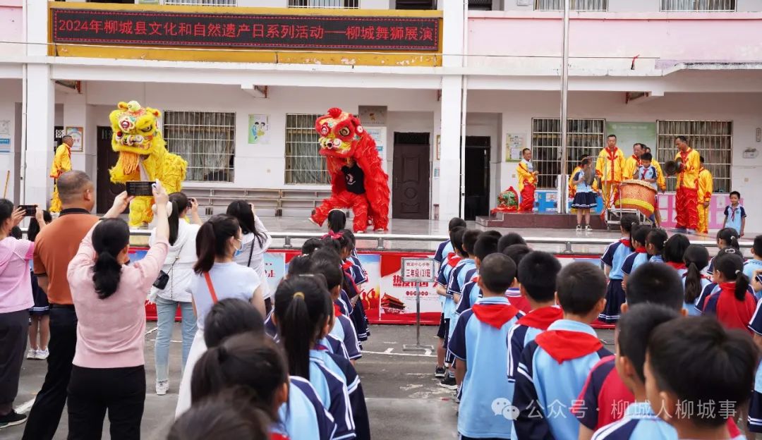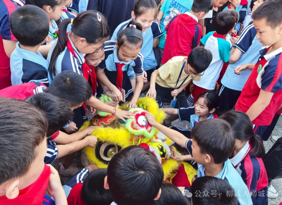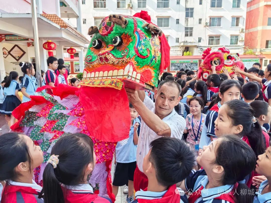 本次活動邀請到了柳州市級非遺項(xiàng)目——柳城舞獅進(jìn)行表演,本次舞獅隊(duì)由市級非遺項(xiàng)目傳承人湯認(rèn)生帶隊(duì),舞獅隊(duì)共來了13人,主要是表演傳統(tǒng)舞獅和青獅,希望能把傳統(tǒng)文化帶進(jìn)校園,繼續(xù)傳承下去。師傅們不光向孩子們了展示傳統(tǒng)的舞獅技藝,還給學(xué)生講解舞獅基本動作與技巧。孩子們興致高昂,在表演結(jié)束后紛紛來到舞獅隊(duì)的師傅們身邊,在舞獅隊(duì)的指導(dǎo)下親身感受舞龍舞獅的魅力。