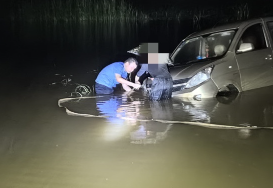 “警察同志,快來幫幫忙……”5月18日晚上,柳城縣古砦派出所民警正在街上巡邏,接到一名群眾求助,稱其不慎開車掉進水池里,水位已快到腰部位置,車子也弄不出來,希望民警來幫忙。接到求助后,民警立即組織警力,帶上相關(guān)救援裝備驅(qū)車趕至現(xiàn)場。經(jīng)過現(xiàn)場檢查,民警發(fā)現(xiàn)車窗還能正常控制升降,于是立即打開車窗,先將車主救出。車主安全救出后,民警又下到水池里,系好車輛牽引繩,利用拖車將車輛拖至岸邊。成功幫助群眾解決困境。