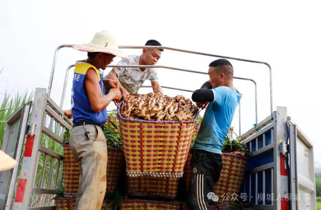 近日,在柳城縣馬山鎮(zhèn)大龍村外大龍屯的生姜地里,呈現(xiàn)出一派繁忙景象。一臺小型鉤機穿梭在一壟壟的生姜間,弄松泥土后,工人輕輕拔出一株株生姜,其他工人用剪刀把綠油油的生姜葉剪掉,再把生姜裝入籃里,一籃籃搬上車,準備運到市場。
