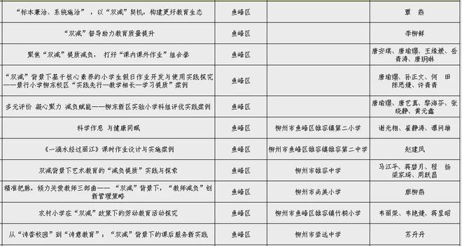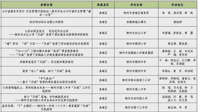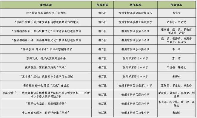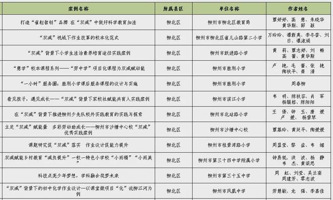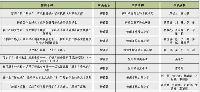 為進(jìn)一步總結(jié)提煉“雙減”工作“柳州經(jīng)驗(yàn)”,日前,市“雙減”辦面向全市進(jìn)行“雙減”優(yōu)秀實(shí)踐案例征集,經(jīng)各單位推薦、組織專家評審、綜合評定,公示無異議,在479個案例中評選出120個案例為2024年柳州市第一批“雙減”優(yōu)秀實(shí)踐案例。