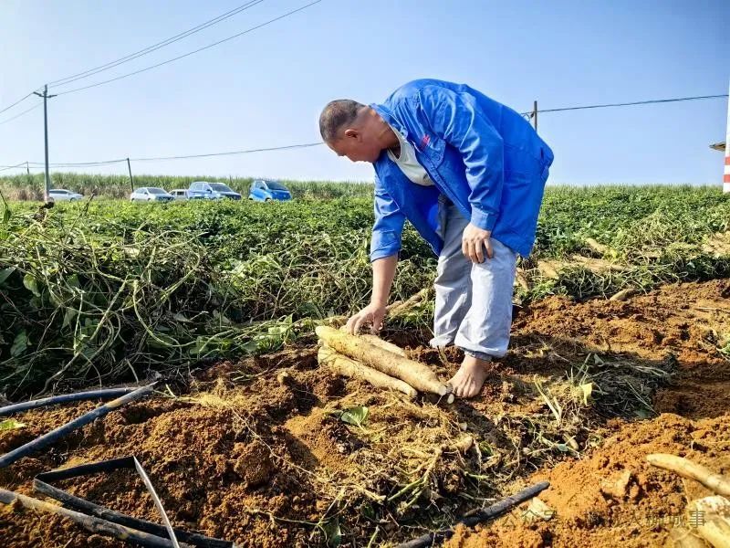 韋福龍說,前些年自己一直在外打工,2019年回到家鄉(xiāng)后,發(fā)現(xiàn)家鄉(xiāng)的土壤非常松軟,很適合種植淮山,本地人過去也種植過淮山,而且這里種出的淮山含有豐富的微量元素,是本地的特色土貨。但后來很多村民都外出打工了,種淮山的人越來越少,全鄉(xiāng)種植淮山的規(guī)模不到千畝。韋福龍看準了這里的商機,于是租用村民30多畝土地種植淮山,開始創(chuàng)業(yè),發(fā)展的勢頭迅猛,幾年時間就擴大到100多畝?!拔沂莻€新農(nóng)人,一方面在家門口就可以創(chuàng)業(yè),一方面也可以照顧家里的父母?!表f福龍說。
