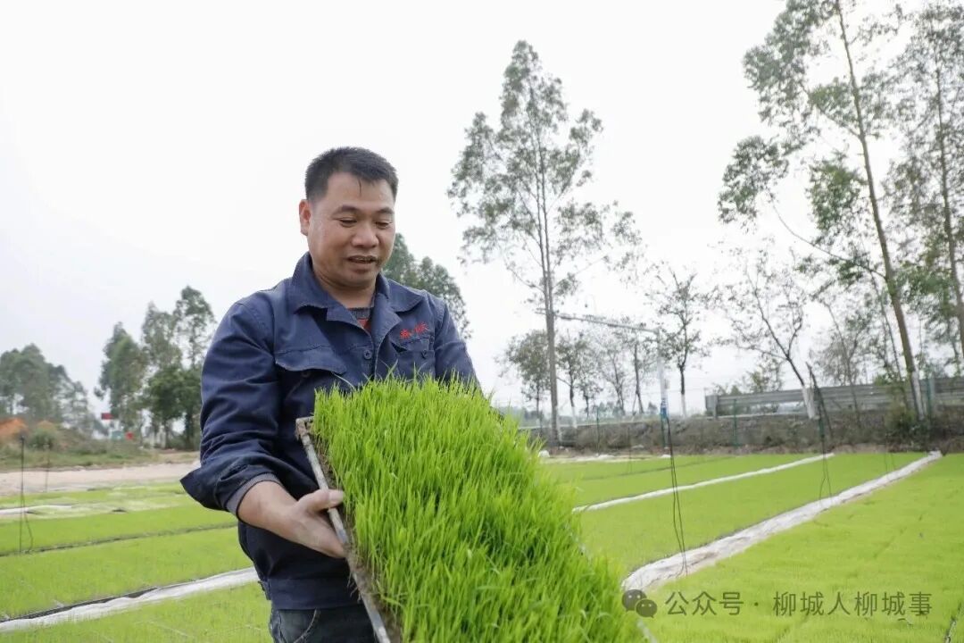 春暖農(nóng)事興,在位于太平鎮(zhèn)的柳州活櫟農(nóng)產(chǎn)品有限公司廠區(qū)內(nèi),工人們正將育秧盤放置到傳送帶上,裝填土壤、播種、覆土……不到五秒鐘,一個個秧盤就整齊的碼放在傳送帶上。