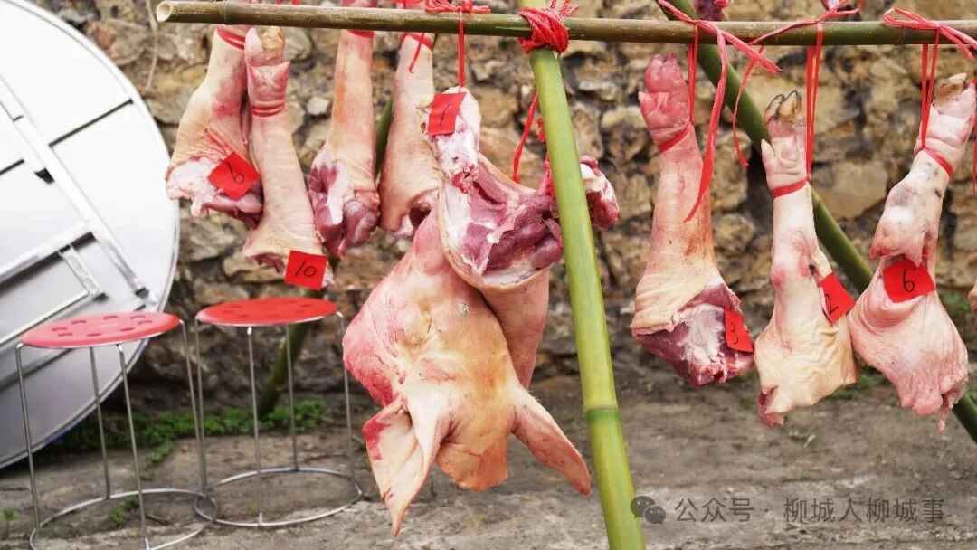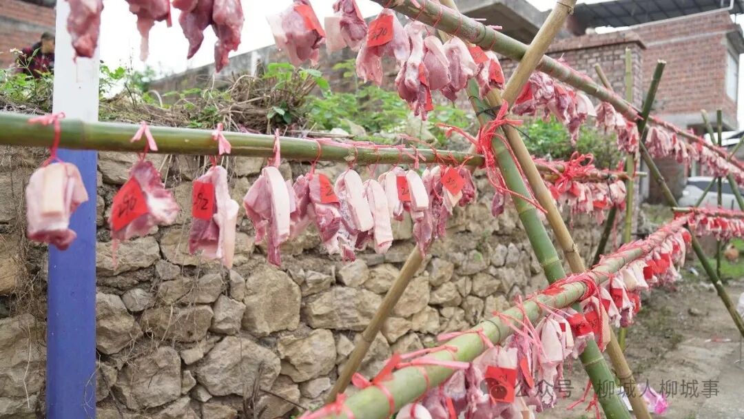 500多名村民依次從抓鬮箱中抽取序號,再憑號領(lǐng)取竹竿上懸掛的對應(yīng)社肉。其中,抽中1號(豬頭肉)至10號(豬腿肉)的村民,作為來年的“社頭”,組織下一次春社活動。
