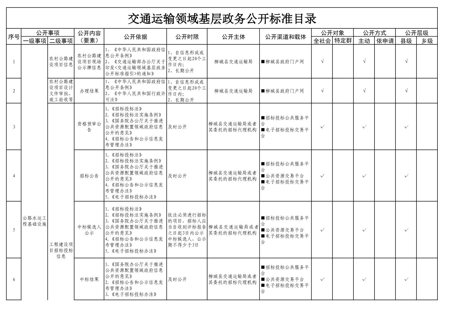 交通運(yùn)輸領(lǐng)域基層政務(wù)公開標(biāo)準(zhǔn)目錄