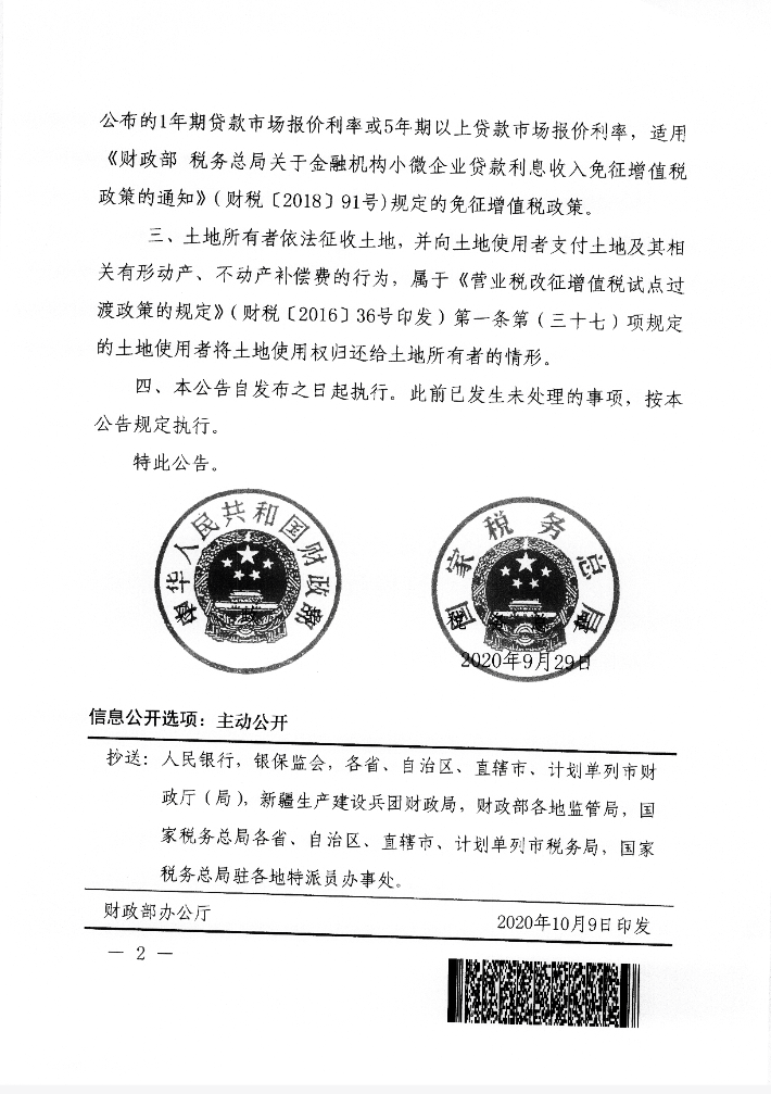 財政部 稅務(wù)總局關(guān)于明確無償轉(zhuǎn)讓股票等增值稅政策的公告(含土地所有者將土地使用權(quán)歸還政府)