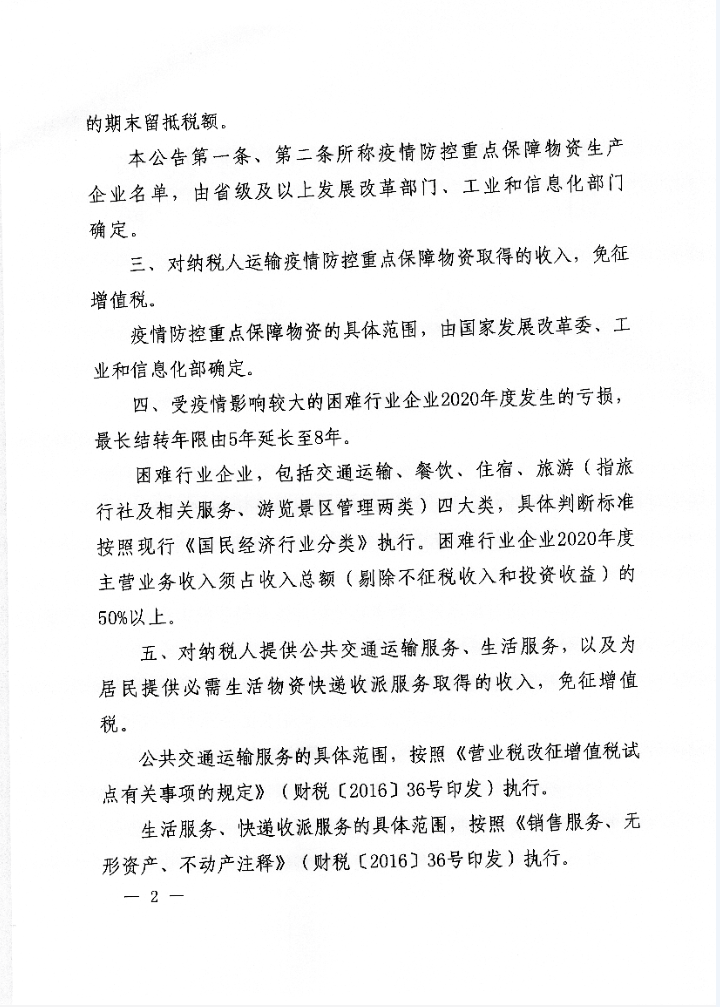 財政部 稅務(wù)總局關(guān)于支持新型冠狀病毒感染的肺炎疫情防控有關(guān)稅收政策的公告