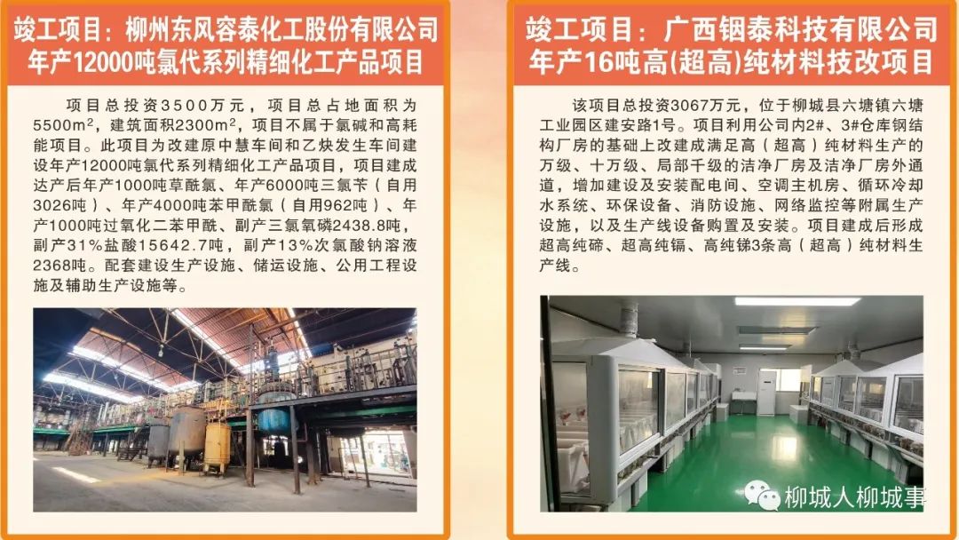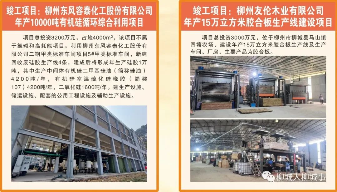 據(jù)了解,此次開工項目6項,總投資19.97億元,主要包括柳城縣食品和醫(yī)藥產(chǎn)業(yè)園、柳城縣中醫(yī)醫(yī)院公共衛(wèi)生能力提升工程等項目。竣工項目10項,總投資2.75億元,主要包括廣西尚品人造板有限責任公司年產(chǎn)5萬立方米人造板生產(chǎn)項目、柳州東風容泰化工股份有限公司年產(chǎn)12000噸氯代系列精細化工產(chǎn)品項目。