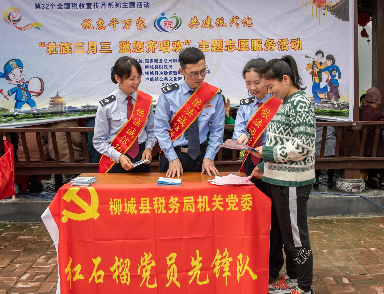 今年4月是第32個(gè)全國稅收宣傳月,柳城縣稅務(wù)局圍繞“稅惠千萬家 共建現(xiàn)代化”這一主題,開展稅收宣傳活動(dòng)。4月12日,柳城縣稅務(wù)局聯(lián)合柳城縣財(cái)政局、沖脈鎮(zhèn)新時(shí)代文明實(shí)踐所、沖脈鎮(zhèn)公共文化服務(wù)中心開展“壯族三月三 邀您一齊來唱?dú)g”壯歡比賽。我們將稅收政策、誠信納稅與中華優(yōu)秀傳統(tǒng)文化相結(jié)合,用山歌唱響稅收好政策,提高納稅人誠信納稅意識(shí)。