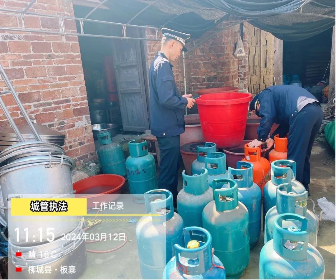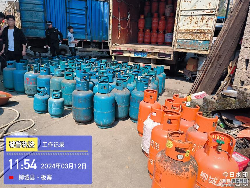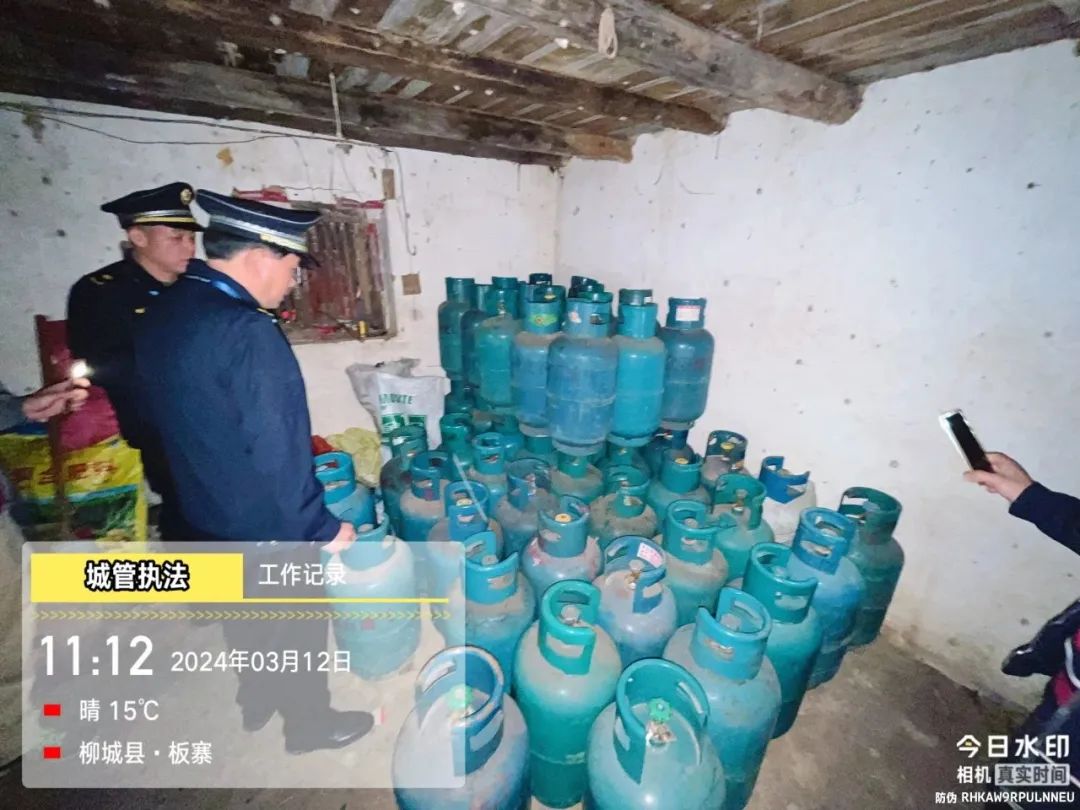 3月12日上午,柳城縣城管執(zhí)法局接到群眾舉報(bào):太平鎮(zhèn)板料村板寨屯有人儲(chǔ)存大量燃?xì)夤?。城管?zhí)法局高度重視,迅速組織人員前往現(xiàn)場(chǎng)排查。當(dāng)日11點(diǎn)10分,執(zhí)法隊(duì)員趕到現(xiàn)場(chǎng),發(fā)現(xiàn)該屯一泥瓦房門(mén)口及房屋內(nèi)存放有燃?xì)夤?,立即控制現(xiàn)場(chǎng)進(jìn)行排查。