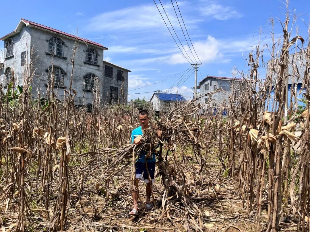 韋何明利用休息間隙在地里做農(nóng)活。(資料圖)