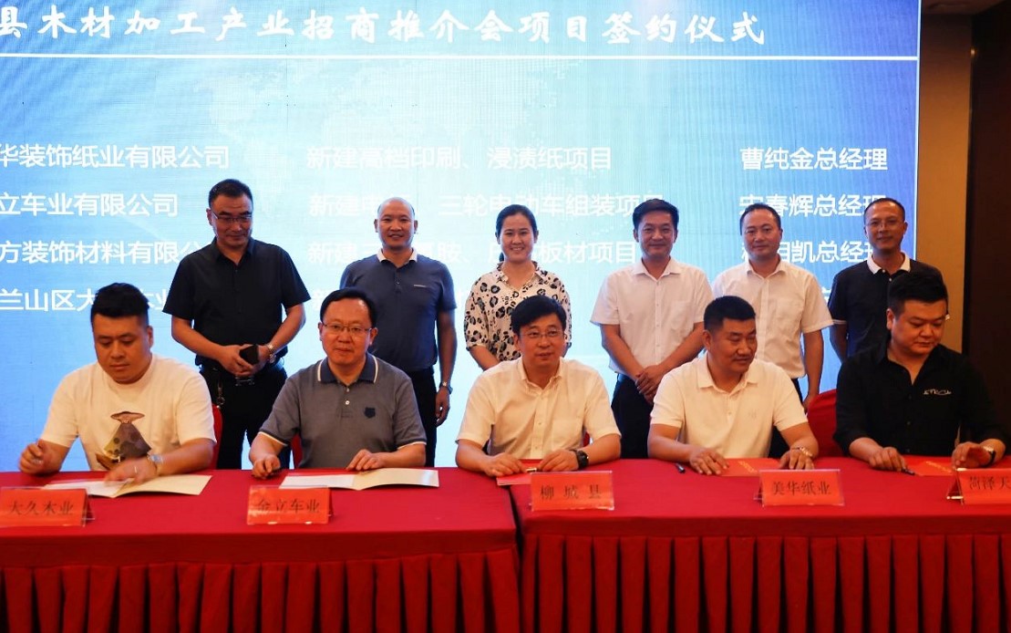 當(dāng)天,臨沂美華裝飾紙業(yè)有限公司、山東金立車業(yè)有限公司、菏澤天方裝飾材料有限公司、臨沂市蘭山區(qū)大久木業(yè)板材廠等4家企業(yè)就新建高檔印刷、浸漬紙、新建電轎、低速電動(dòng)車、新建三聚氰胺、壓貼材板等項(xiàng)目與柳城達(dá)成初步意向,并簽署了意向投資協(xié)議,總投資4.65億元。