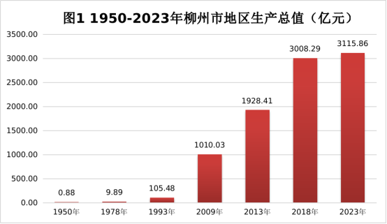 柳州市1950年經(jīng)濟(jì)總量為0.88億元,到2023年達(dá)到3115.86億元,1950-2023年年均增長11.8%。改革開放以后,全市經(jīng)濟(jì)快速發(fā)展,1979年全市經(jīng)濟(jì)總量突破10億元,1993年經(jīng)濟(jì)總量突破100億元,2009年突破1000億元大關(guān),特別是黨的十八大以來,經(jīng)濟(jì)總量繼續(xù)積累,到2018年突破3000億元,站上了新的歷史起點(diǎn)。
