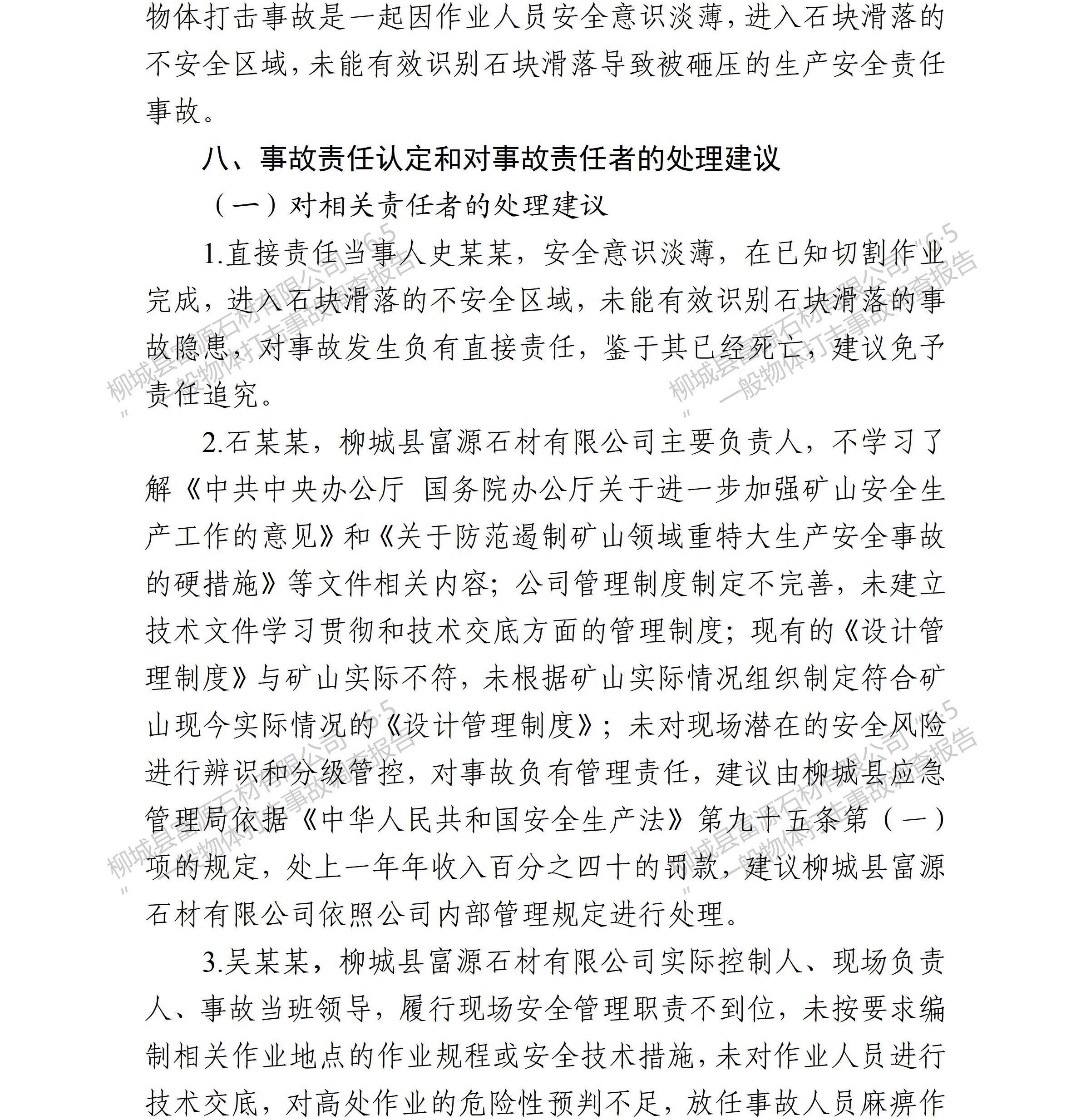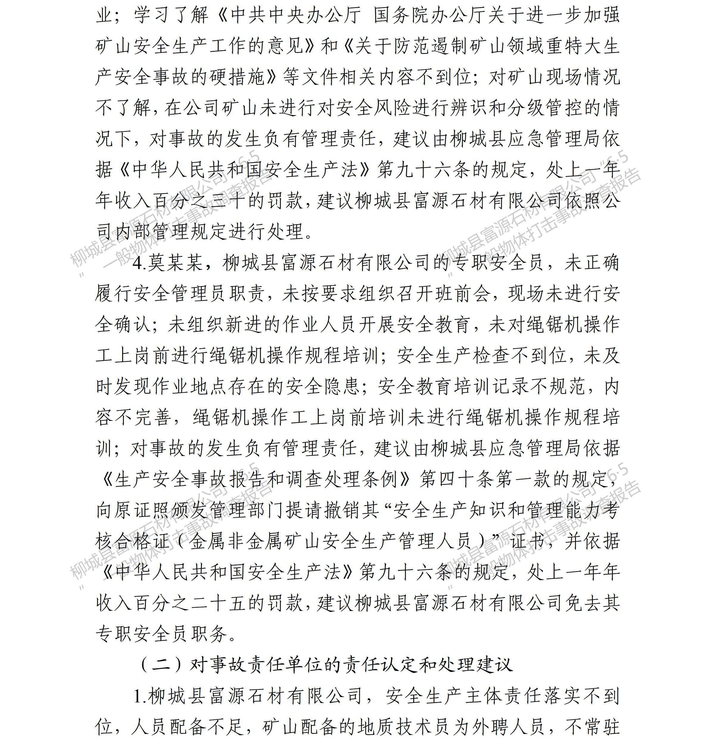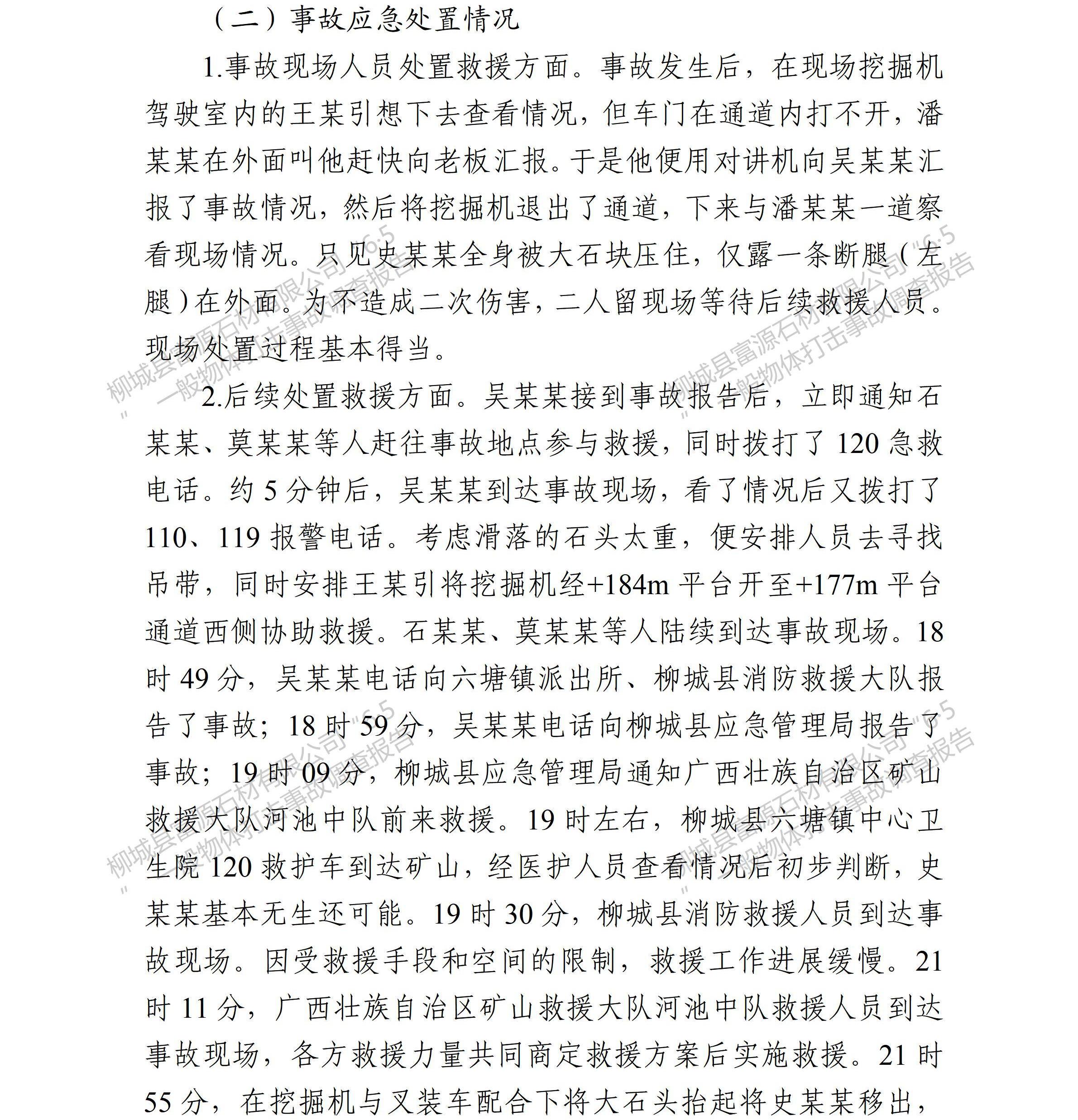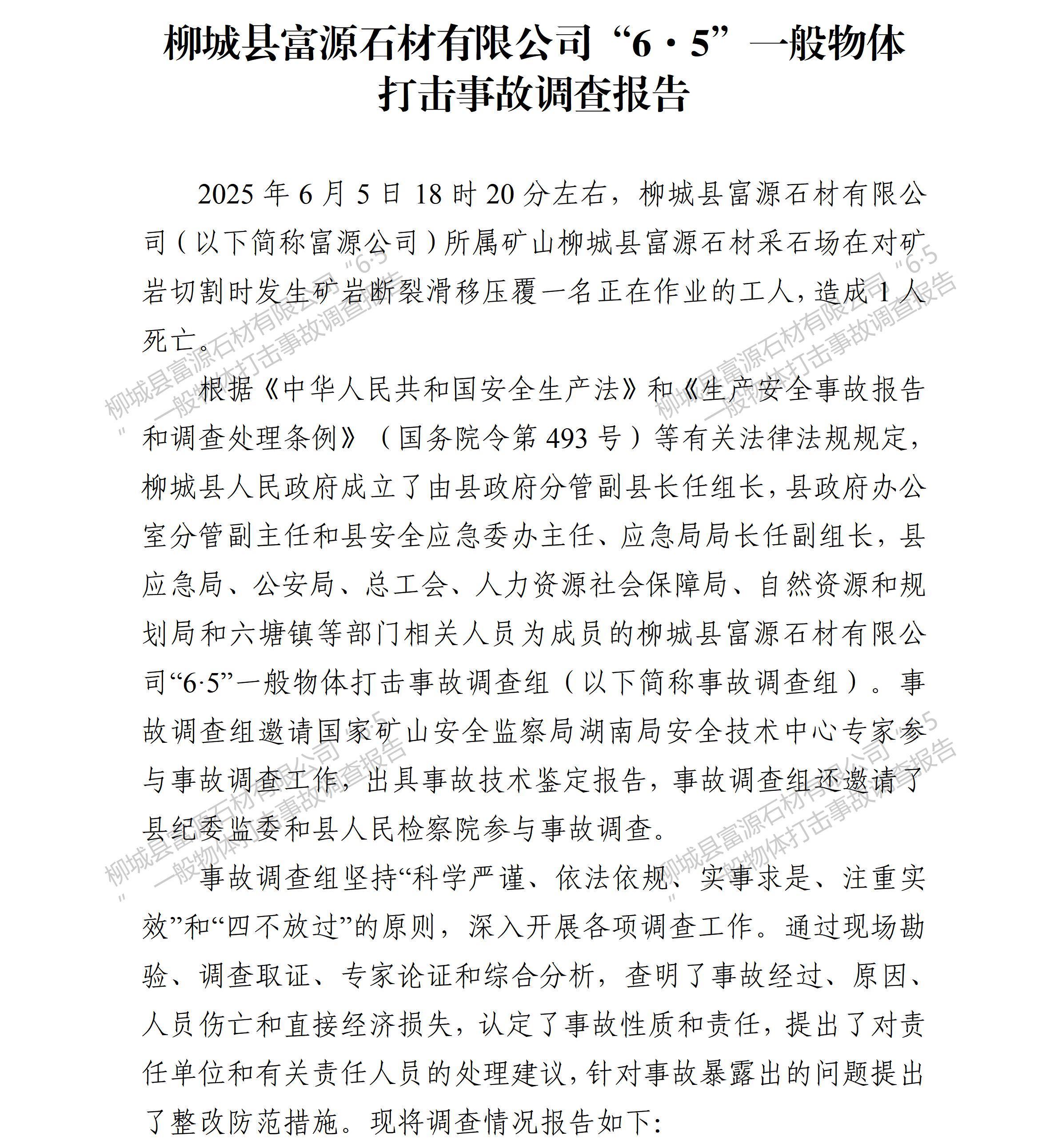 柳城縣富源石材有限公司“6·5”一般物體打擊事故調(diào)查報(bào)告