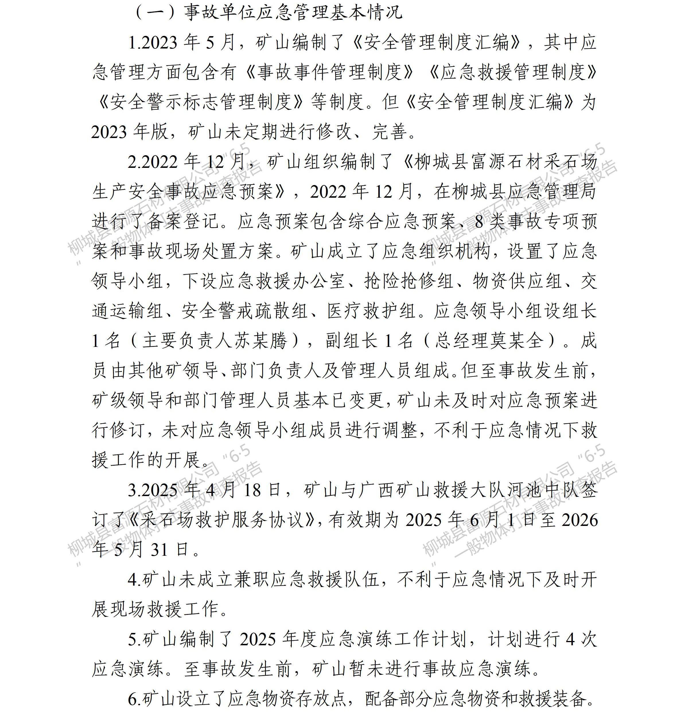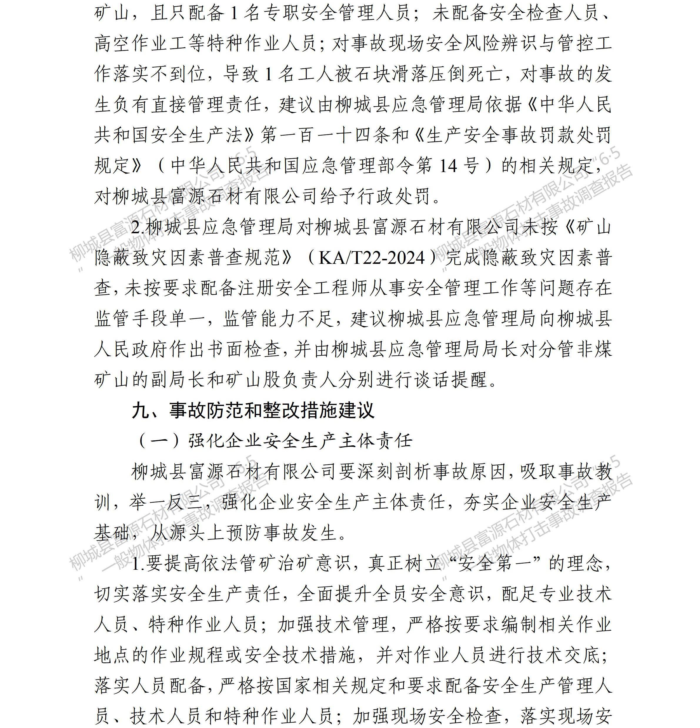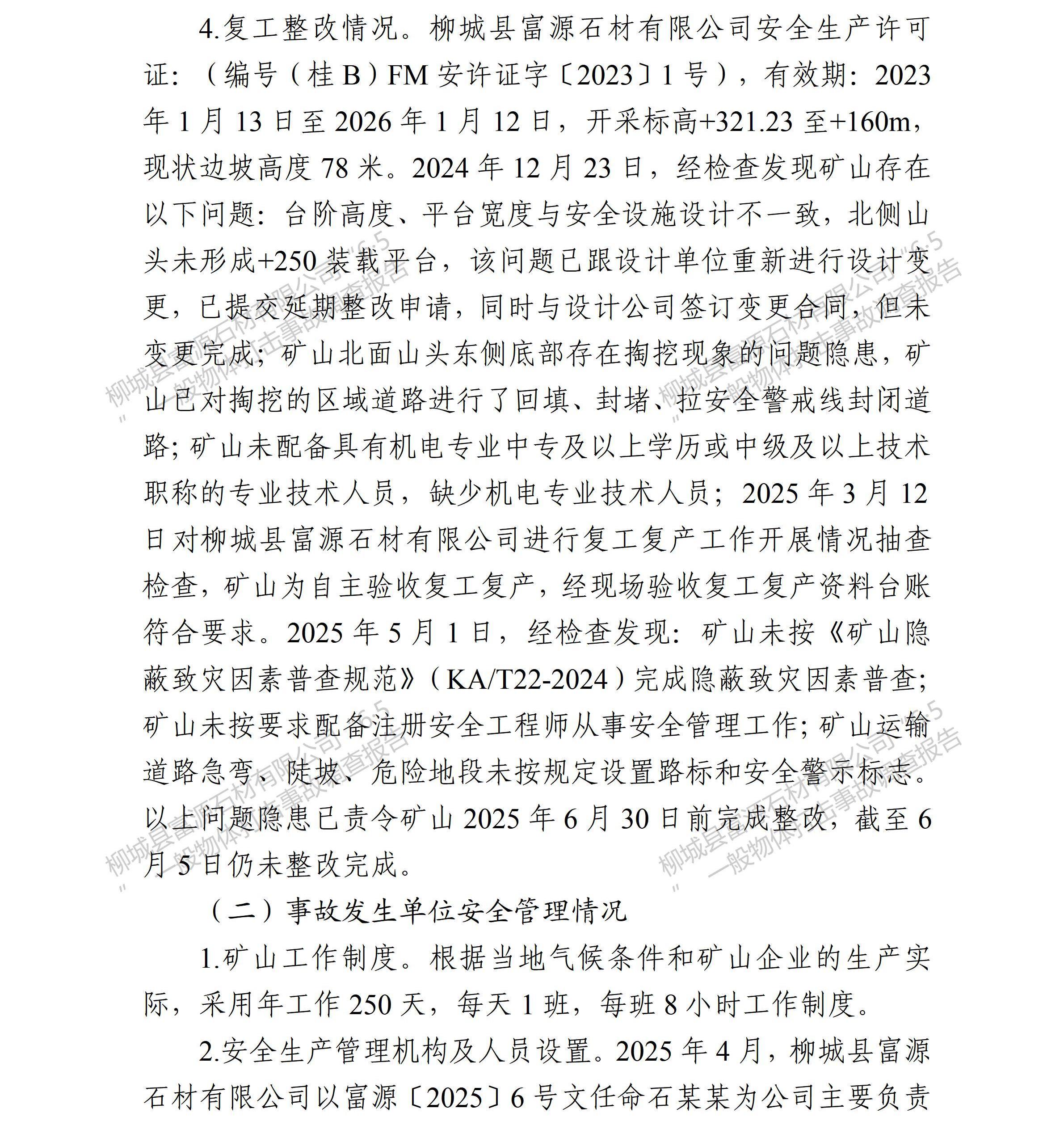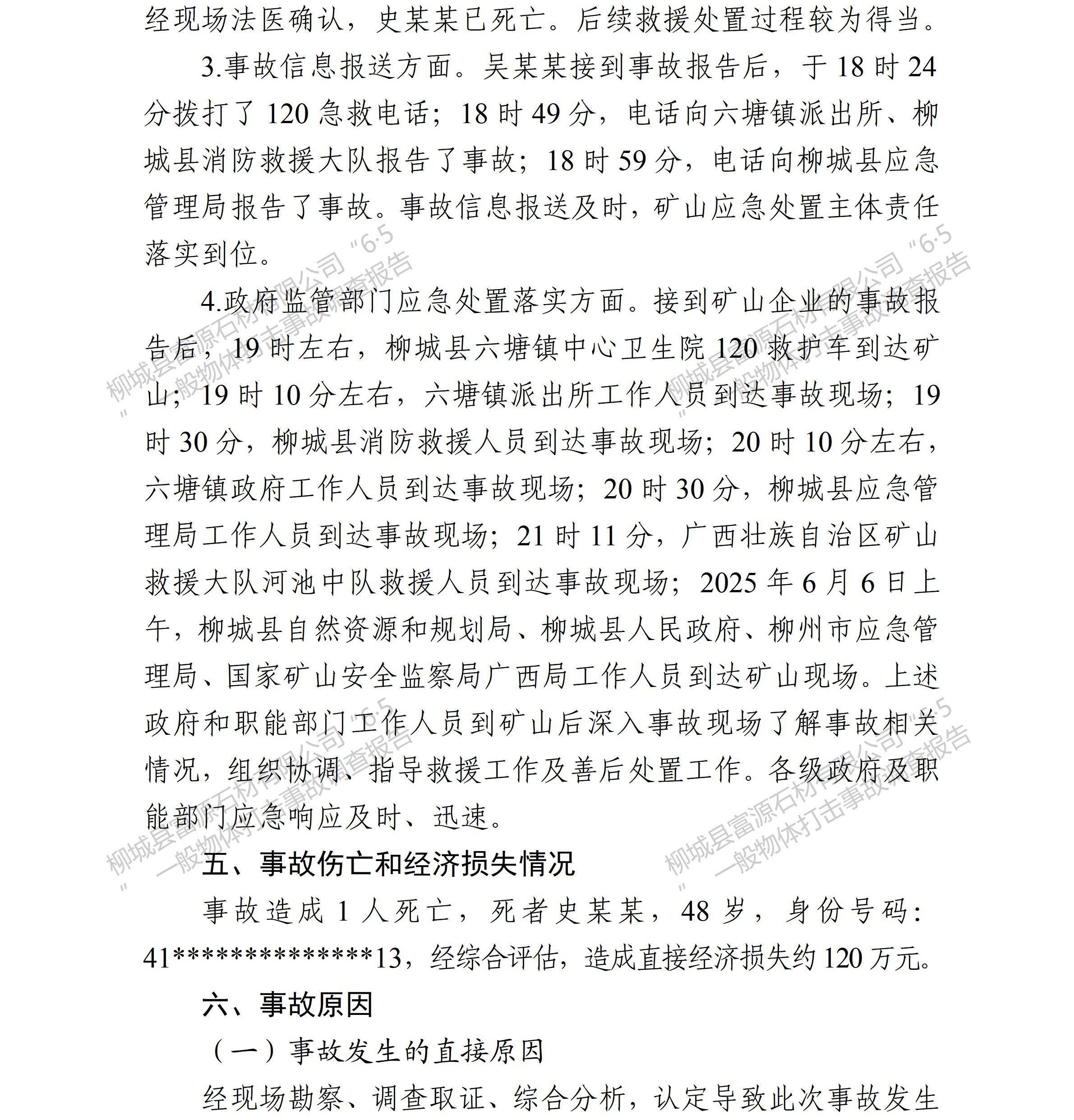 柳城縣富源石材有限公司“6·5”一般物體打擊事故調(diào)查報(bào)告