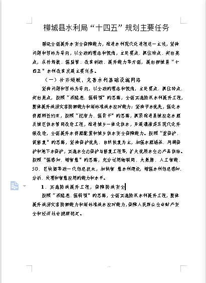 柳城縣水利局“十四五”規(guī)劃主要任務(wù)