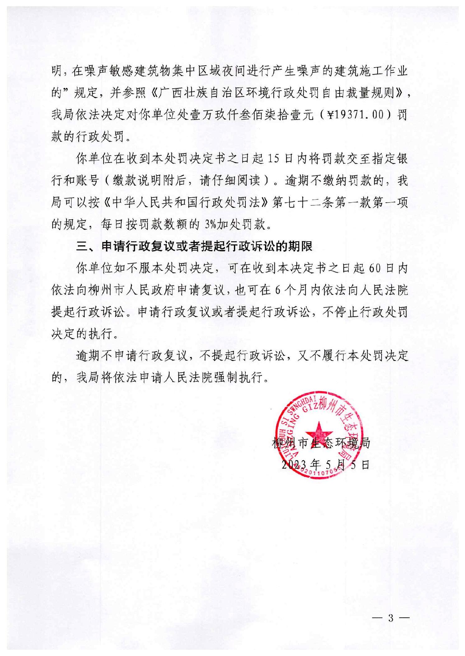 柳州市生態(tài)環(huán)境局行政處罰決定書 柳環(huán)罰字〔2023〕14號--柳州市火光土石方工程有限責(zé)任公司