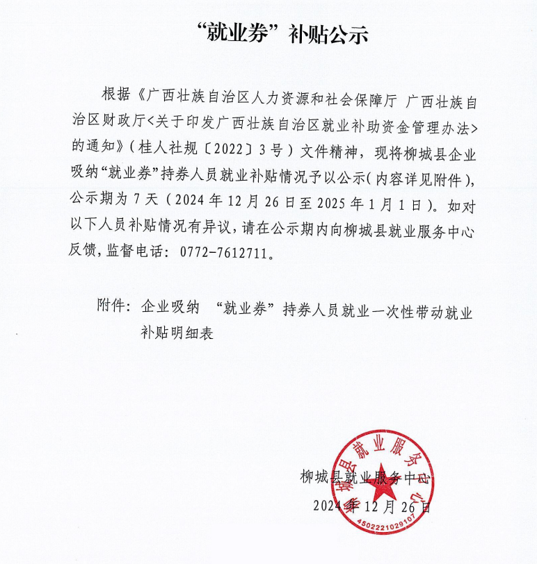 來(lái)源: 柳城縣人力資源和社會(huì)保障局  | 發(fā)布日期: 2024-12-26 11:30