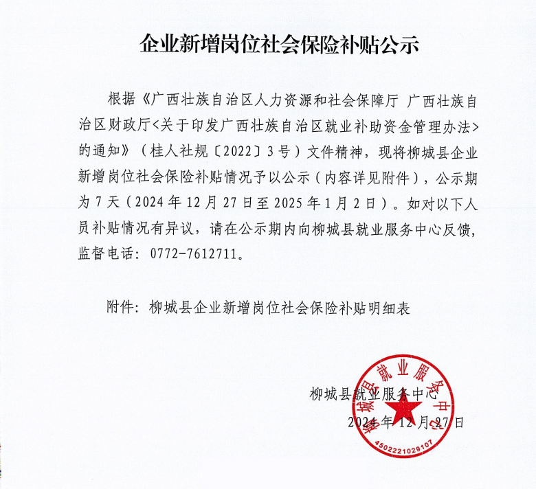 企業(yè)新增崗位社會(huì)保險(xiǎn)補(bǔ)貼公示