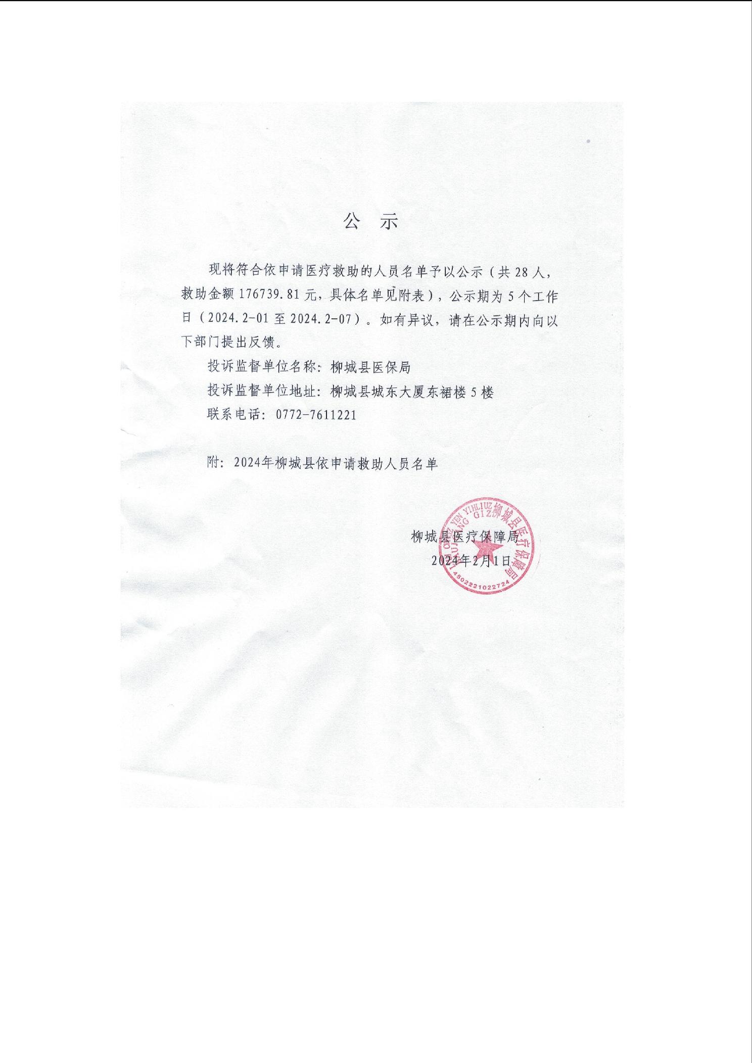 2024年柳城縣依申請(qǐng)救助人人員公示材料(第二批)