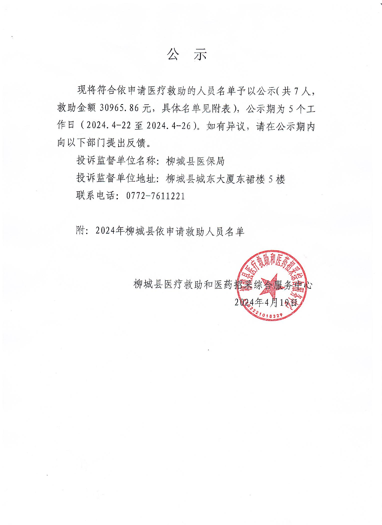 2024年柳城縣依申請(qǐng)救助人員名單公示(第七批)