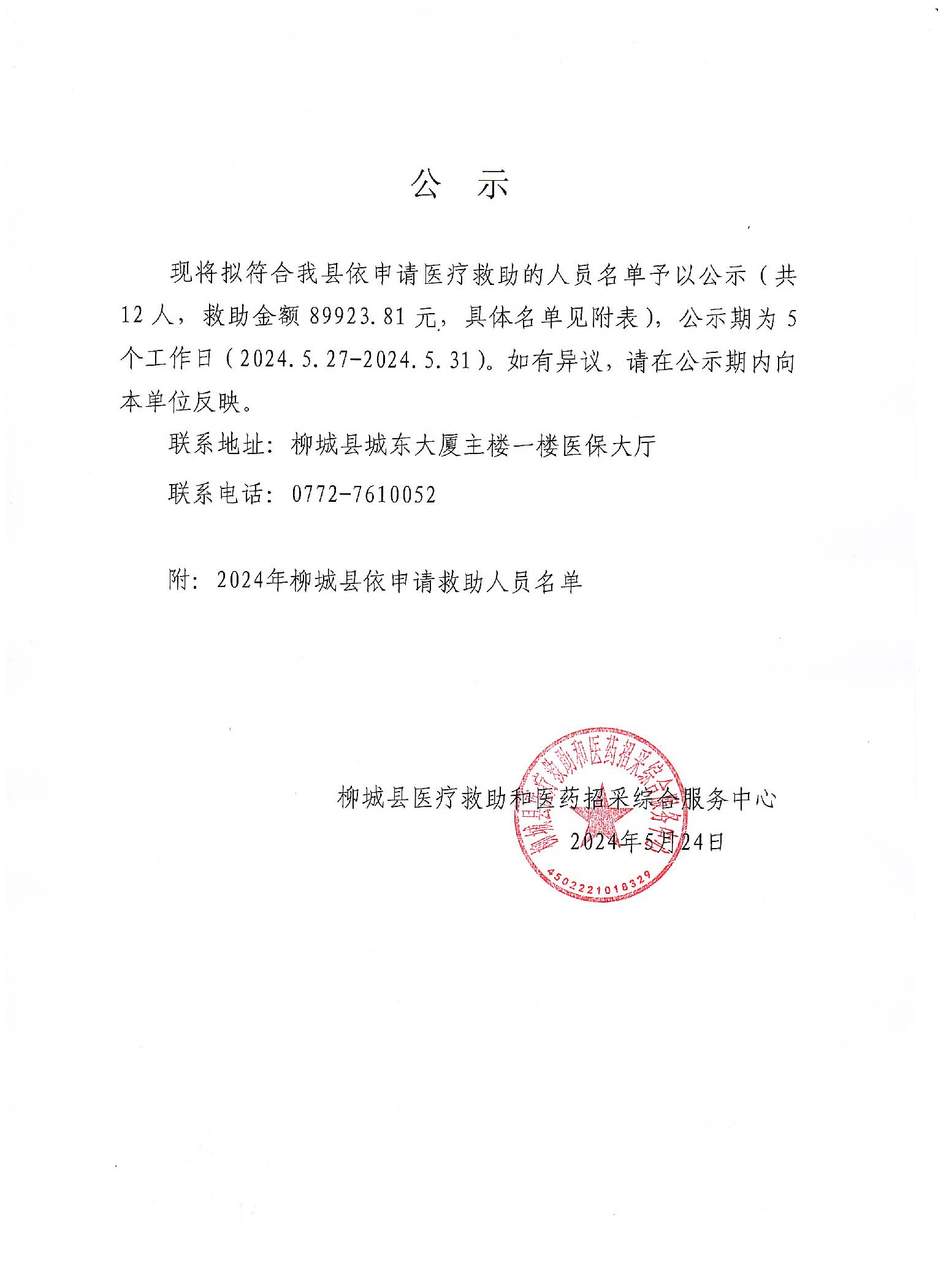 2024年柳城縣依申請救助人員名單公示(第九批)