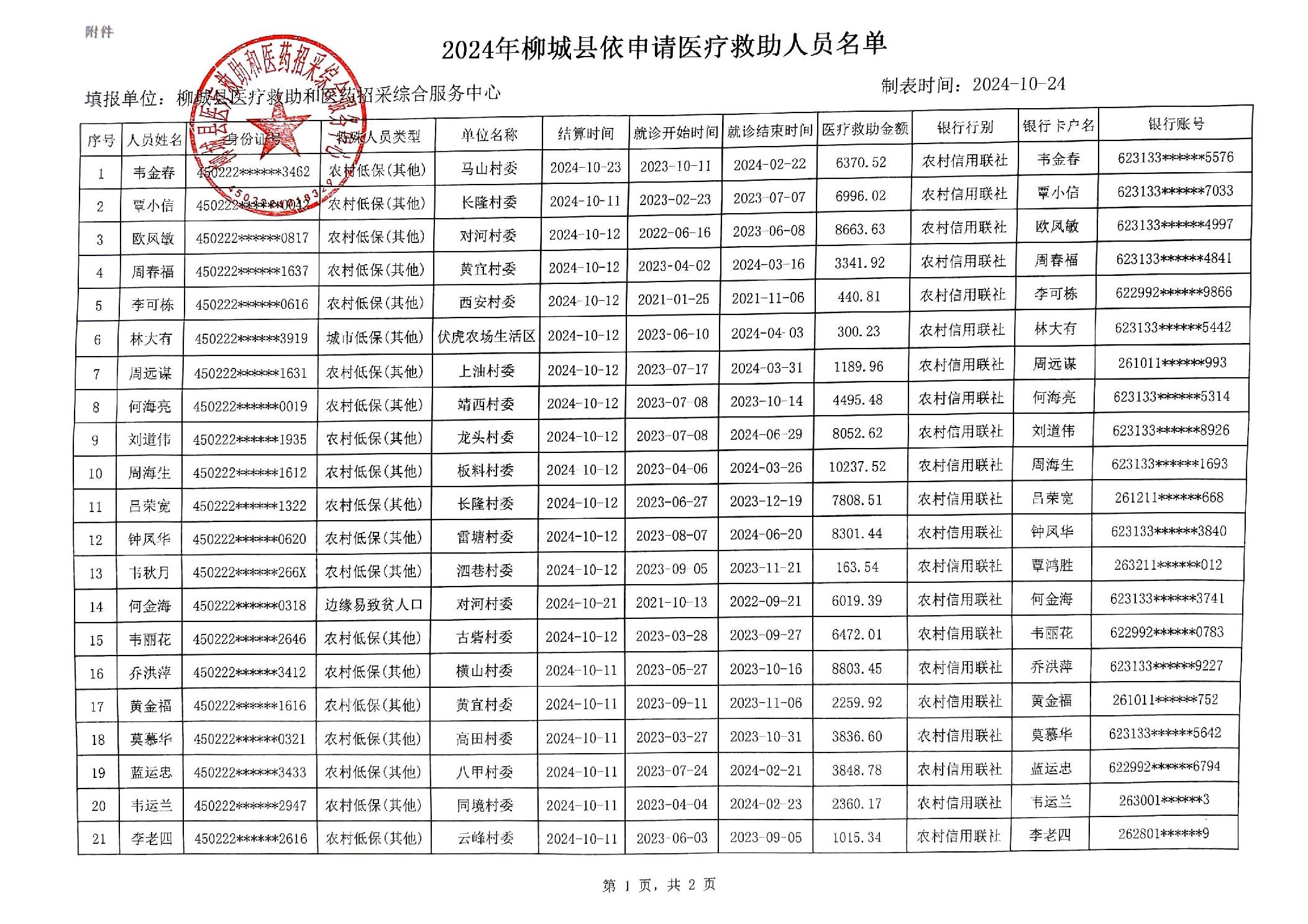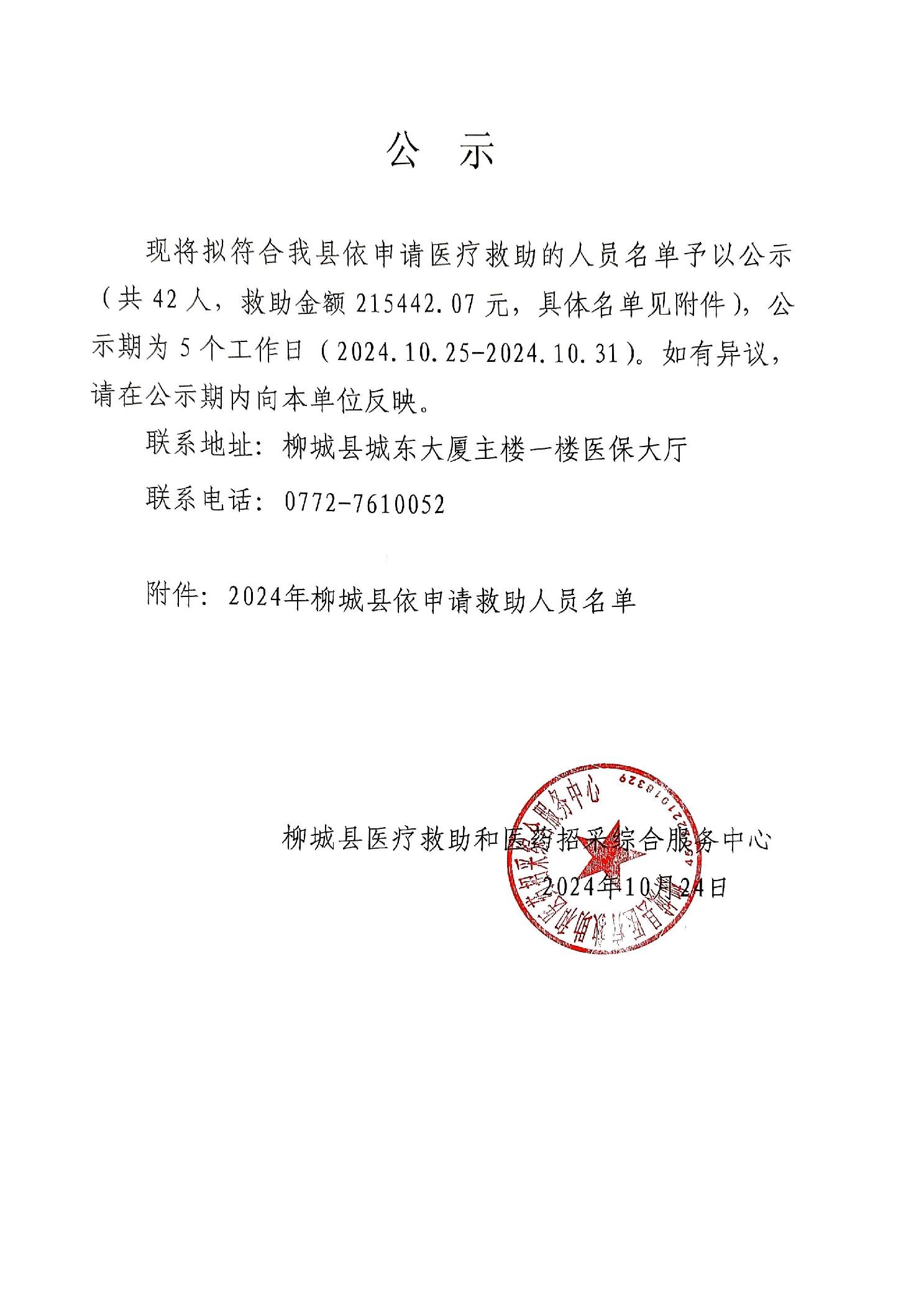 2024年柳城縣依申請(qǐng)醫(yī)療救助人員名單公示(第十六批)